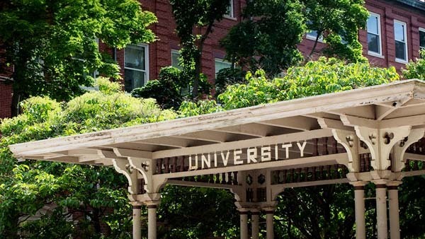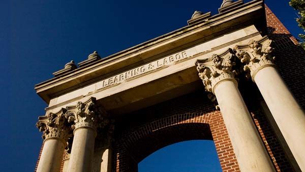 The east entry to the campus at Lincoln Avenue and Illinois Street features the stone portal from the entrance to the first University-built classroom building, University Hall. The portal entrance apparently was kept behind the Architecture Building for a number of years and then seemingly disappeared from the campus until it was found at Robert Allerton Park in Monticello in 1994. Alan and Phyllis Welsh Hallene, U of I supporters and alumni, donated the funds to construct the gateway plaza, which was dedicated in 1998.