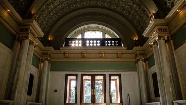 With its dome, Foellinger recalls Thomas Jefferson’s Rotunda on the University of Virginia campus. The auditorium has a copper roof and cornice. Considered an example of the Beaux Arts Classical style, it was built in 1907 from a design by Clarence Blackall. In 1984, the auditorium was completely renovated with funds provided by alumna Helene Foellinger.