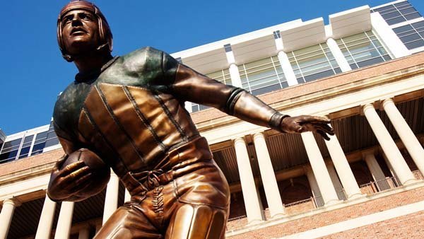 The stadium was dedicated on October 18, 1924, with a football game against the University of Michigan that has become legendary. The University’s Harold “Red” Grange scored four touchdowns against Michigan in the first twelve minutes, then ran for a fifth touchdown and threw for a sixth. A mixture of Georgian Revival and Neoclassical architecture, the structure is considered one of the nation’s most distinctive sports stadiums. The second story is a colonnade of paired limestone Roman Doric columns, representing University of Illinois students who perished in World War I. More than 20,000 students, alumni, and friends of the University contributed approximately $1.7 million to fund the construction.