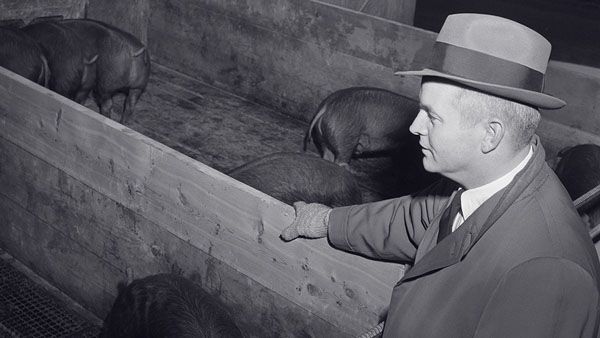 In 1950, Gene Becker accepted a position on the Illinois faculty and began research on the diet for swine. His findings were revolutionary and put him at odds with the established swine industry. Becker concluded that adding animal protein and so-called “unidentified growth factors” to feed was unnecessary. In fact, he said, there was “no such thing as unidentified growth factors.” Soon Becker's economical corn-soybean meal diet for swine, which combined corn, soybean-meal, vitamins and minerals, was adopted worldwide.